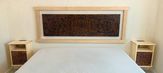 Sold outMaple and walnut burl bed frame