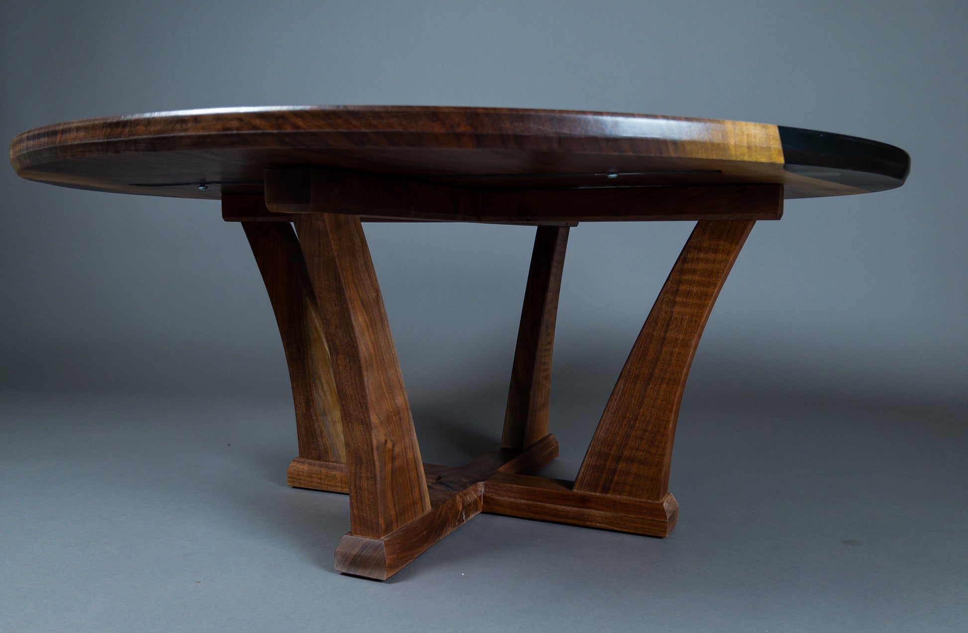 Crafted with meticulous attention to detail, the crotch walnut coffee table stands as a timeless piece of functional artistry. The allure begins with its centerpiece – a meticulously selected slab of crotch walnut wood, renowned for its mesmerizing grain patterns and rich, warm hues.