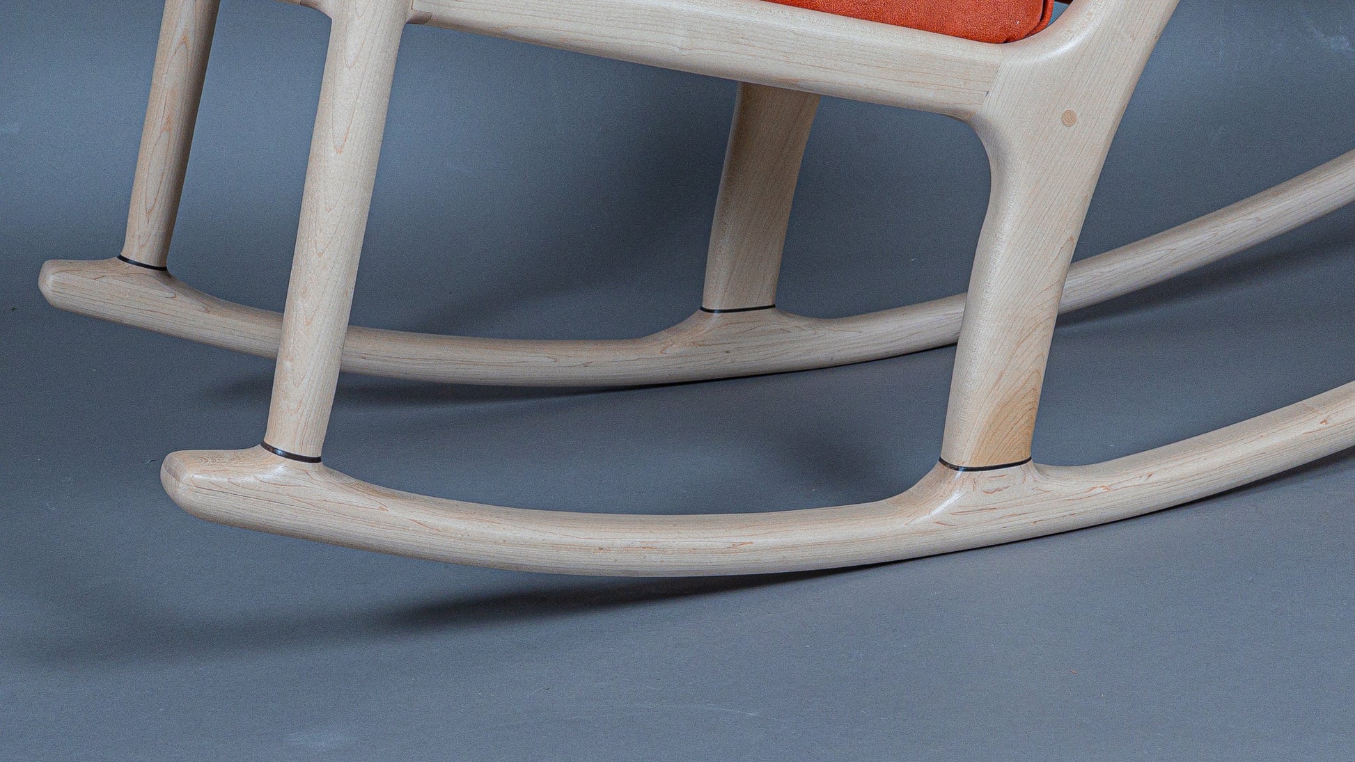 This rocking chair is part of a collection for a nursery for two new grandparents. The collection so far consists of this rocking chair, a dresser, and a bookcase. This chair is inspired from the Maloof rocker, but with a bit more foam and fabric. Made from solid maple with gaboon ebony accents, this rocking chair will last for years to come.